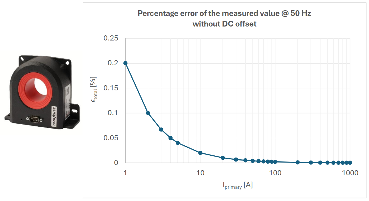 除了非常小的直流偏移(大多數測量設備都可以補償)之外,比率誤差在數據表中分為兩個值。第一個值是測量值的百分比誤差。第二個值是整個電流測量範圍內的固定值,以滿量程值的百分比表示。例如,DN1000ID1 的最新數據表中可以找到下表。