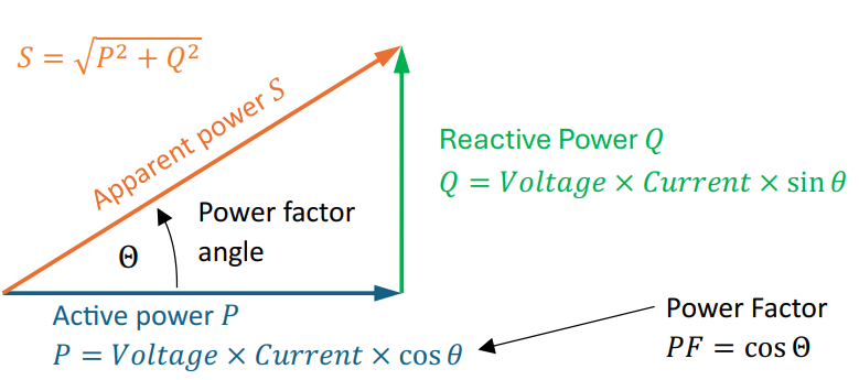 所用電流傳感器的相位誤差也會導致功率測量中產生額外誤差。其基礎是普遍已知的功率三角形和通過功率三角形定義的功率因數。