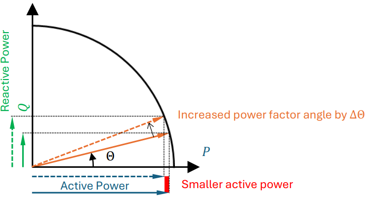 有功功率的百分比減少 = cos(Θ+ΔΘ)-cos(Θ) / cos (Θ) × 100