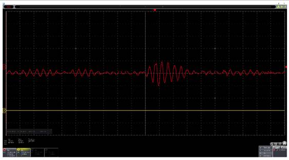 在上面的圖片中可以看到一個約為 3.33 MHz 的振盪。電流感測器在輸出端沒有低通濾波器,因此這些訊號通常不會被衰減。對於示波器應用,建議使用可以過濾輸入訊號的示波器,以最大限度地減少高頻干擾。