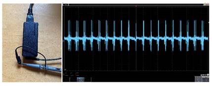 如今,開關電源等非線性負載不僅會導致電網中的諧波失真,而且通常也是電磁輻射的來源。 例如,繞組元件會產生磁漏磁場,而具有高脈衝電壓的導體會產生電場。 這些場會耦合到電流感測器中。 示波器可用於記錄這些振盪。