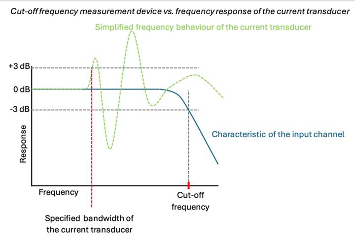 在許多情況下,電流感測器的指定頻寬低於測量設備的頻寬。傳輸到二次側、且高於電流感測器指定頻寬的信號成分可能會被顯著放大或衰減。電流互感器的頻寬並非由具有相應截止頻率的低通濾波器所限制。