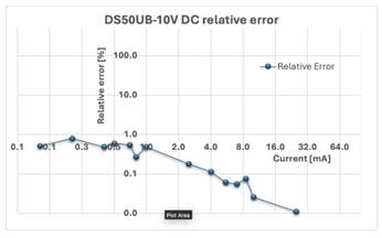 也可以計算非常小電流下的總誤差。DS50UB-10V 的整體準確度如下所示。