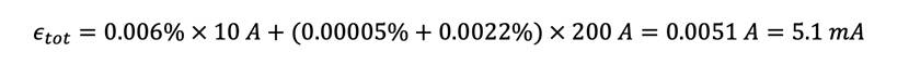 該公式在規格書的第 3 頁提及。如果我們現在計算 10 A 振幅的精準度,公式如下: